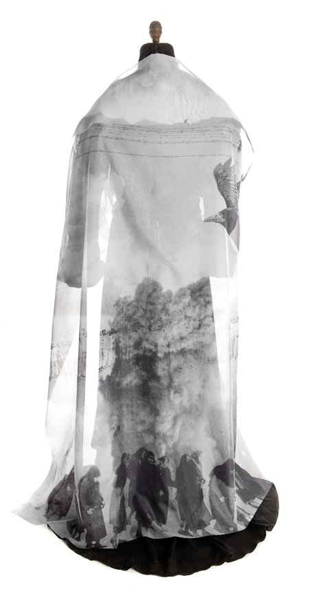 Rosowsky, una artista radicada en Massachusetts, trabaja en una variedad de medios, pero tiene una preferencia especial por la tela. La translucidez de la seda, la gasa o la malla —y las imágenes que se ven tanto en la tela como a través de la misma— es para ella como la transitoriedad del recuerdo, y el desvanecimiento en la historia de los pocos parientes que sobreviven y que pueden contar estos recuerdos.