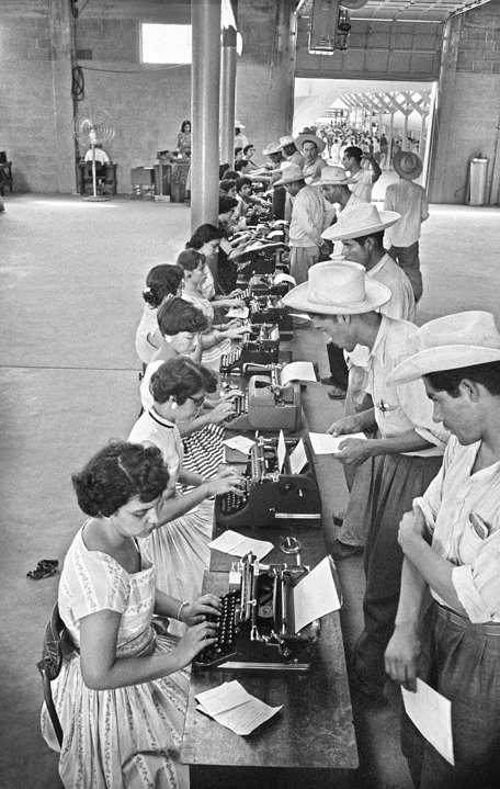 The exploitation of bracero workers and violations of their legal rights and civil liberties prompted efforts to repeal the program. In 1956, photographer Leonard Nadel documented the harsh realities of bracero life, intending to highlight employer violations and improve bracero working conditions. The exhibition is traveled by the Smithsonian Institution Traveling Exhibition Service, and Nadel’s images provide the visuals for “Bittersweet Harvest: The Bracero Program, 1942-1964.”